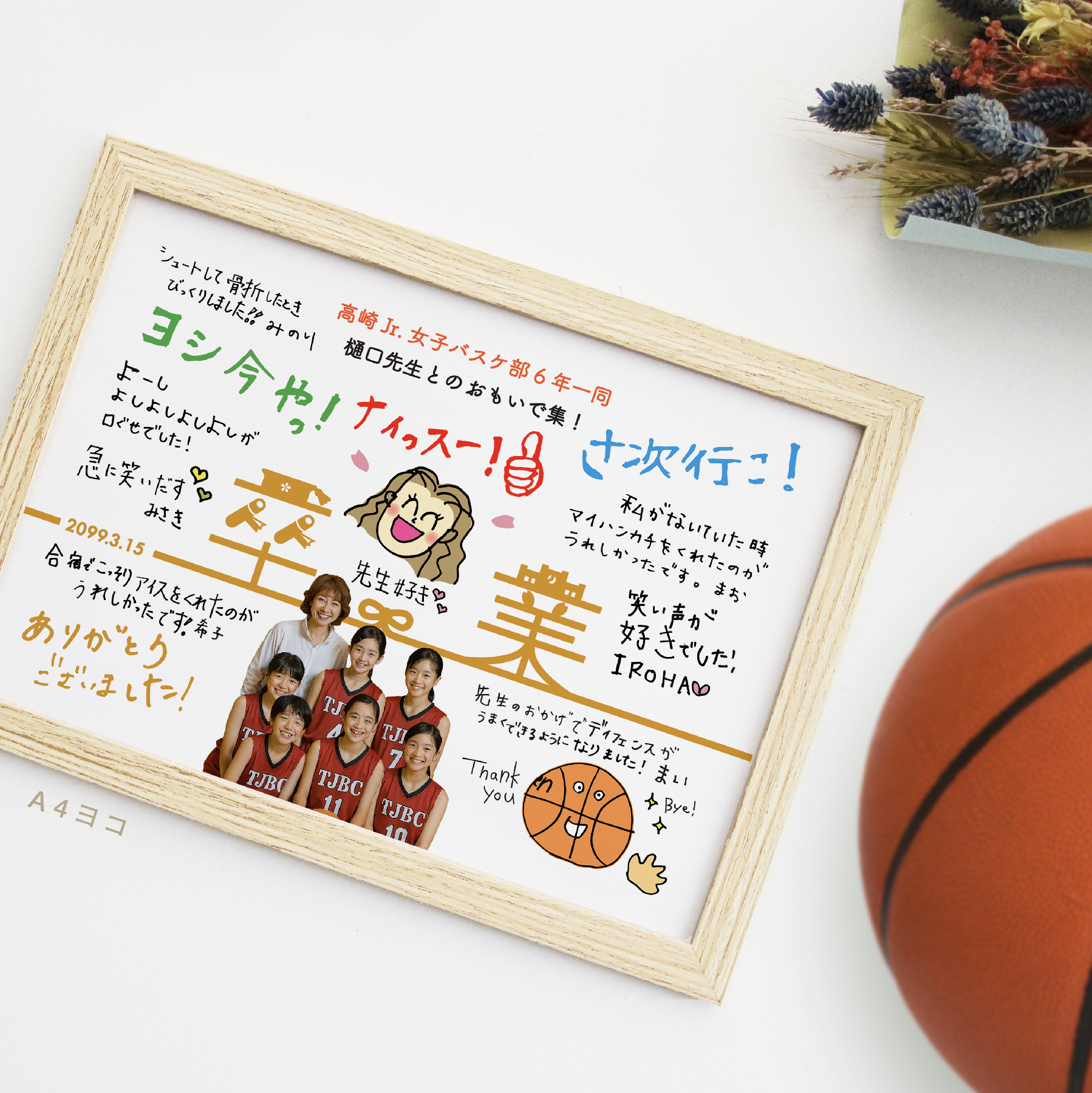手書き文字、おえかきイラスト、似顔絵、園や学校での思い出写真、部活の集合写真など