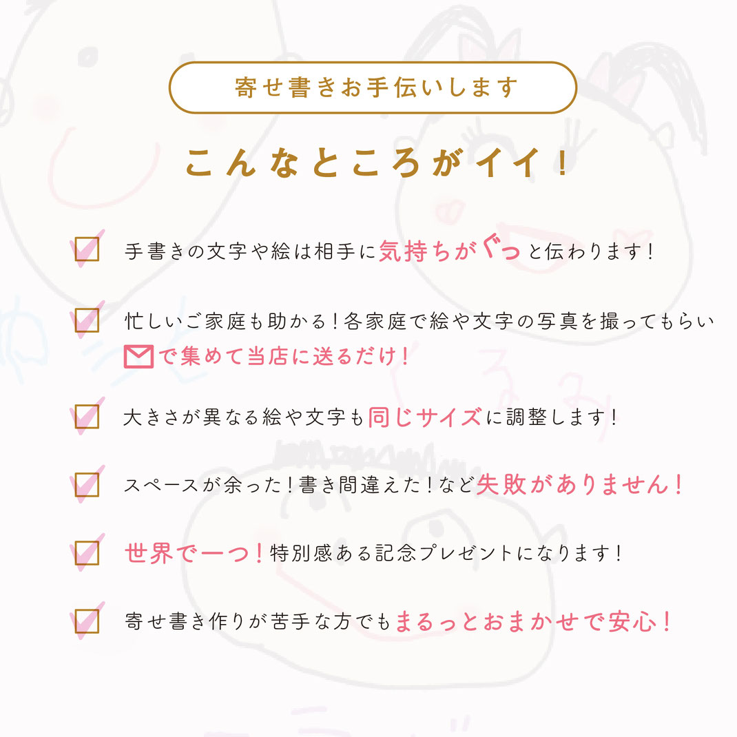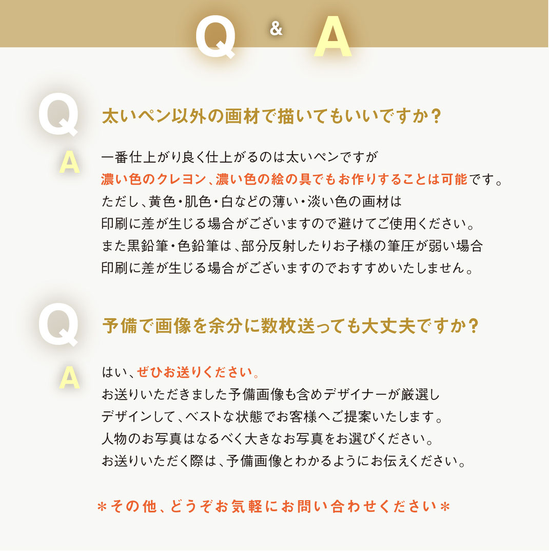 子供が描いた似顔絵やメッセージ、思い出の写真を集めて送るだけ。