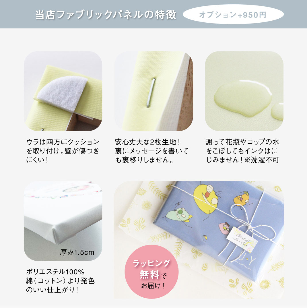 布製のパネル。フレームなしでそのまま飾れます。小棚や壁にも飾れるサイズ。手にとって眺めることもできます。(写真数:10点程度までがおすすめ)ラッピング付きでお届け! |